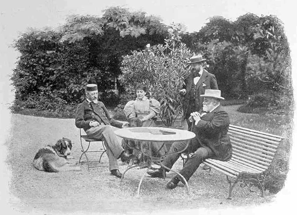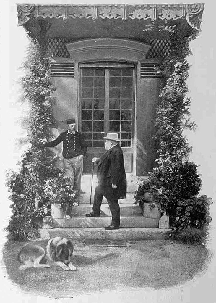 Jules Claretie et Francisque Sarcey devant la maison de Jules Claretie à Viroflay
