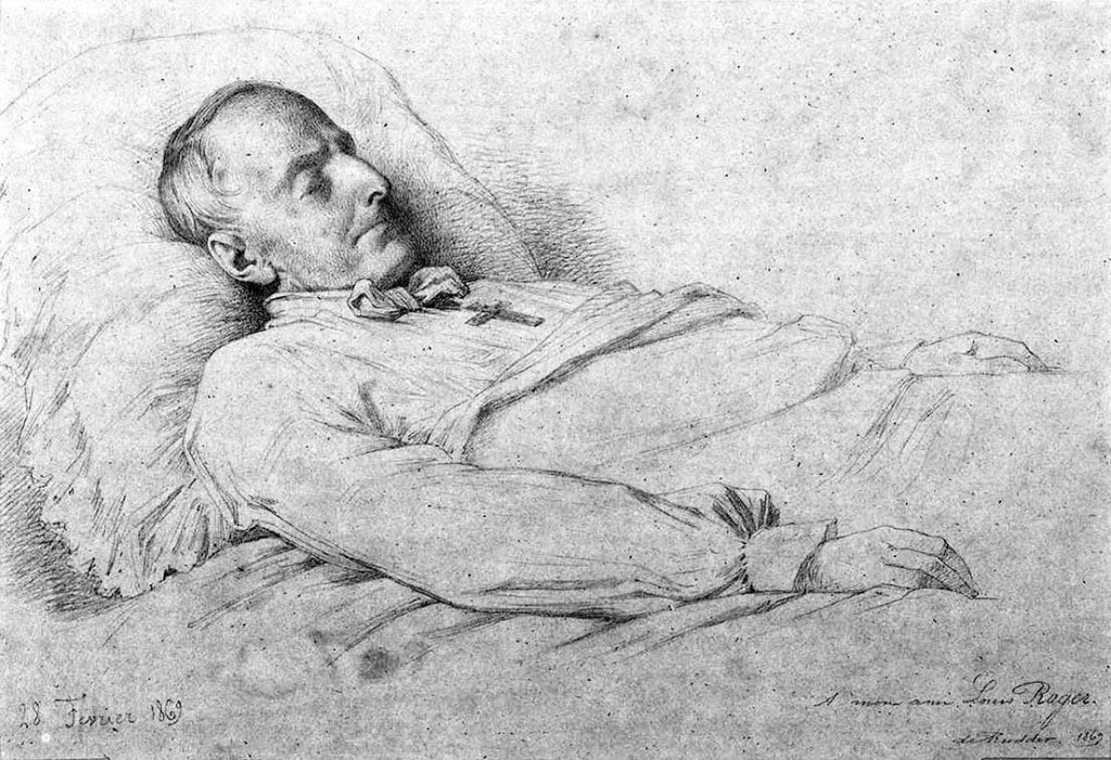 Louis-Henri de Rudder, Lamartine sur son lit de mort. Inscription en bas à droite : « À mon ami Louis Roger. / de Rudder, 1859 ». Photo B. Mahuet/Musée des Ursulines, Mâcon