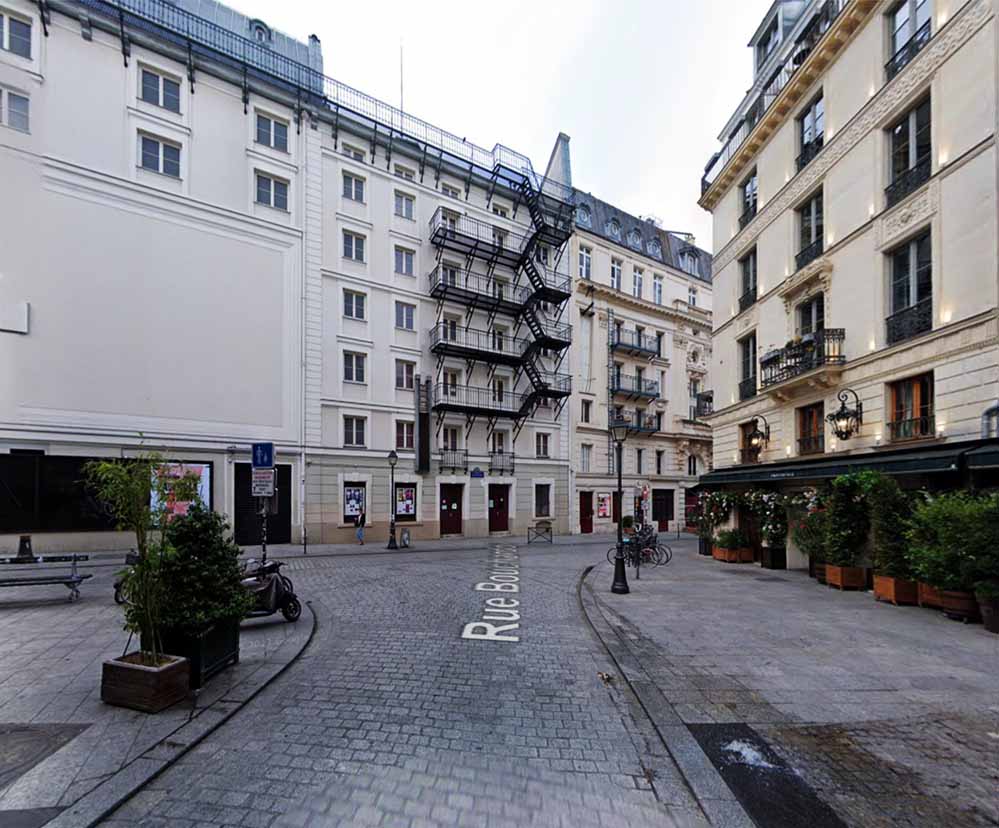 Le théâtre de la Renaissance, de nos jours. À gauche, la rue René Boulanger ; dans l’axe : le boulevard Saint-Martin