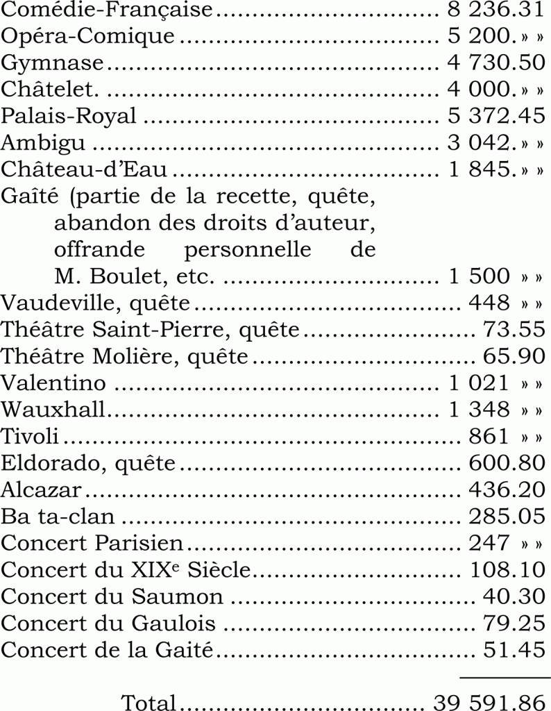 La lettre d’Alexandre Dumas — La contribution des théâtres — Notes