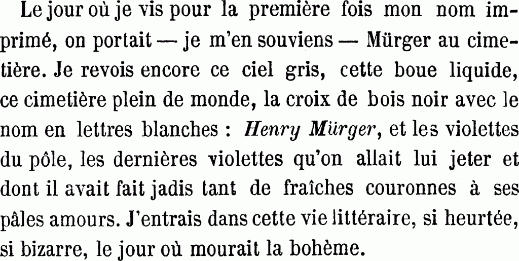 138 Henri Murger (note 49), mort le 28 janvier 1861 avant sa 39e année, a été inhumé au cimetière de Montmartre le jeudi 31.