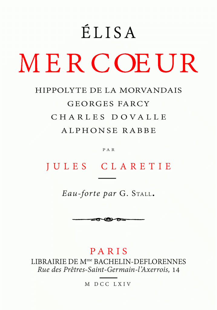 D’ailleurs, c’était le temps où il entrait au Nain Jaune, que venait de fonder Aurélien Scholl. Il était au Figaro. Il publiait en 1863 Les Ornières de la vie78, son premier recueil de nouvelles. L’année suivante, il donnait Les Victimes de Paris79 qui comprenait, à côté de nouveaux contes, quelques études documentaires, des biographies mélancoliques de contemporains, trop tôt disparus comme Georges Farcy80, Charles Dovalle81, Alphonse Rabbe82. Volume intéressant, joliment présenté, aujourd’hui assez rare, qui se ressentait malheureusement des exigences de l’édition et qui, superficiel souvent, étonne lorsqu’on songe qu’il est sorti de la plume de ce consciencieux qu’est M. Claretie. En 1865, il publiait coup sur coup une étude remarquable sur Petrus Borel83, Le Dernier Baiser84, L’Incendie de la Birague85 et enfin Les Voyages d’un Parisien86, livre charmant où le jeune auteur note ses impressions de tourisme ici et là, en France, en Angleterre et en Allemagne. Enfin, après s’être révélé comme conférencier, l’année précédente, à la salle — aujourd’hui disparue — de la rue de la Paix, en prenant avec une jolie crânerie de jeunesse le parti de La Fontaine contre Lamartine qui avait parlé dédaigneusement du fabuliste dans ses Entretiens87, il se voyait retirer la parole, en février 1865, à la salle de la rue Cadet, par ordre du gouvernement, à la suite d’une conférence sur Béranger88. C’était la renommée, cette grande gloire, qu’apporte dans la France frondeuse, la plus petite des vexations du pouvoir.
