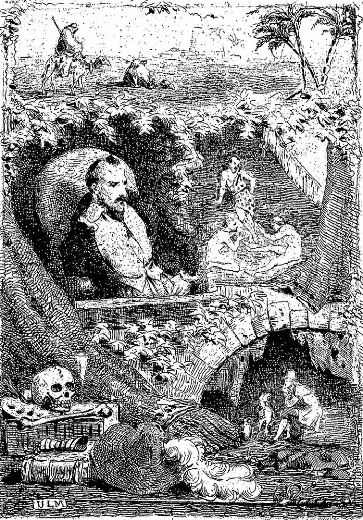Peu à peu cependant, la chasse aux papillons, la cueille aux insectes, sans doute attiraient moins l’adolescent. Dans ce milieu de bonne culture — celui de l’ancienne société bourgeoise — d’autres goûts le gagnaient insensiblement. À Ratevoul, il y avait sur une des deux grandes armoires à boiserie du salon, des livres anciens, des estampes de la bonne époque et même de vieilles gravures du XVIe. Ces volumes, in-folios, reliés en veau fauve, elzévirs couverts de parchemins, livres à chappe8, romans dépareillés, contes de Crébillon fils ou tomes égarés, des Mémoires d’un homme de qualité9 peut-être, éveillaient une nouvelle curiosité dans ce jeune cerveau : « J’ai pour la première fois parcouru là le vieux Corneille et cet autre livre, qui m’amusait tant, les Aventures du Baron de Fœneste, de Théodore Agrippa d’Aubigné, dans l’édition d’Amsterdam de 1731 »