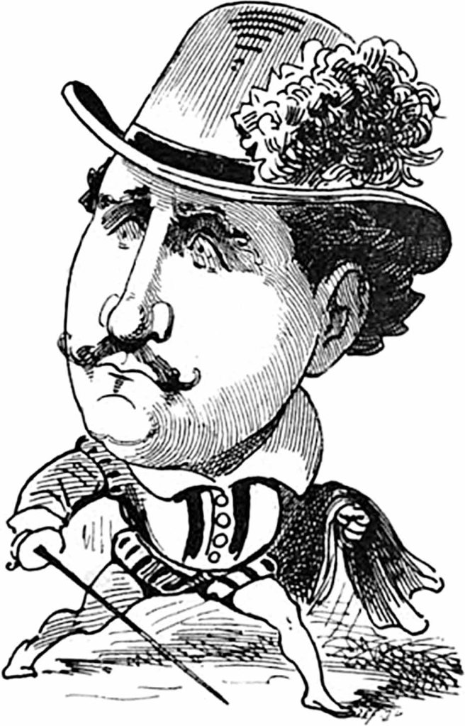 Portrait-charge d’Étienne Mélingue par Gill, en couverture de La Lune du 27 janvier 1867