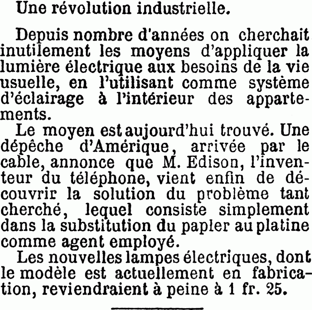 Je lis dans le même journal un fait divers commençant ainsi : « Une dépêche d’Amérique, arrivée par le câble… »
