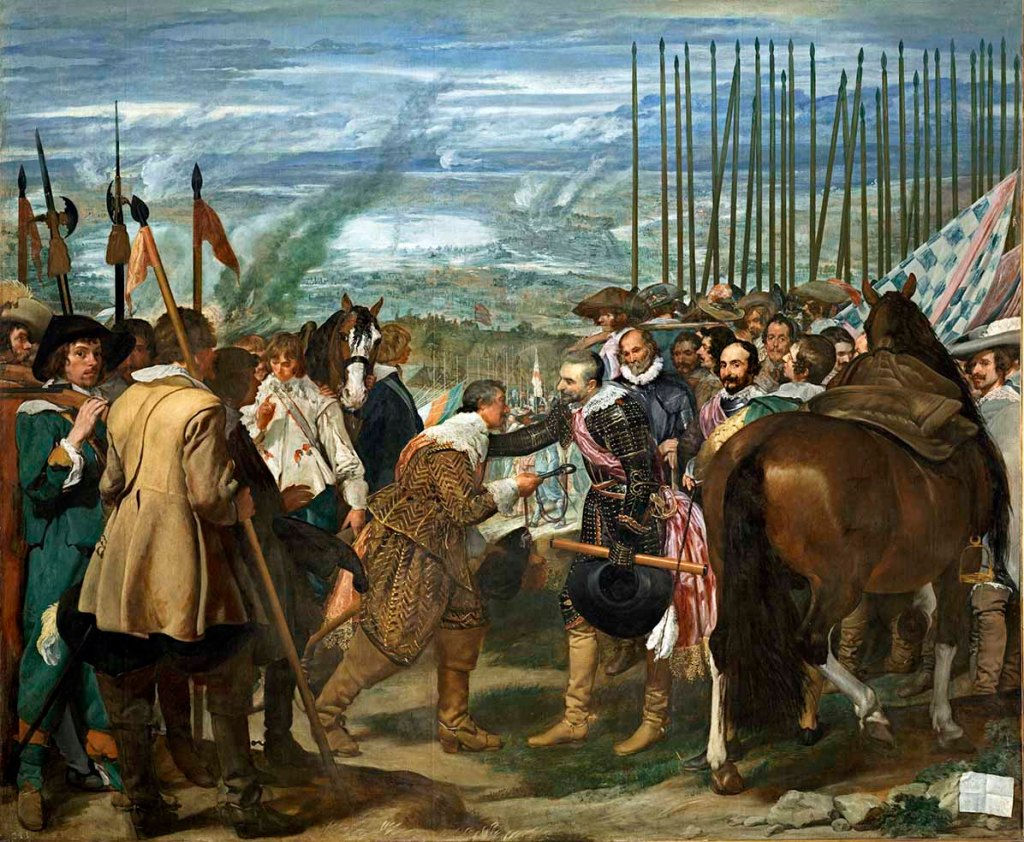 Diego Vélasquez (1599-1660), La Reddition de Bréda, dite aussi Les Lances, (1635) toile de plus de trois mètres sur trois visible au musée du Prado depuis 1819