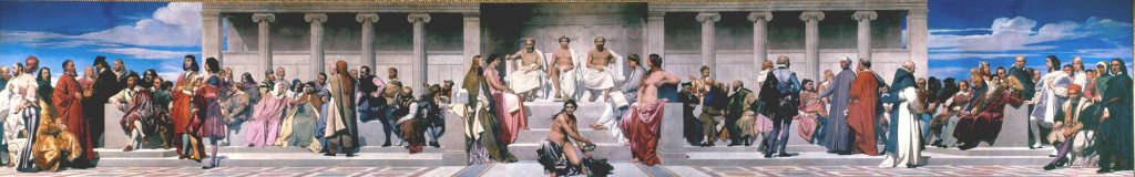 Mais quelle merveille que la peinture d’Ingres qui lui fait face ! C’est une peinture â la détrempe, exécutée en fort peu de temps, à Rome, pour une fête et rapportée depuis quelques années seulement en France. L’architecte de l’École l’a fait placer là, dans l’amphithéâtre. C’est un chef-d’œuvre. Et quel sentiment de l’antique dans la façon dont Ingres drape ses Romains !